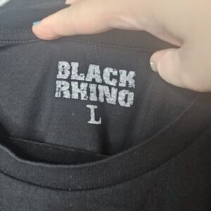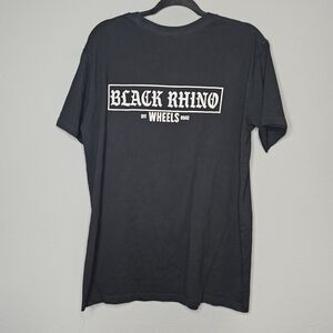 Black Rhino Wheels Mens L Large Tee Shirt Short Sleeve Graphic Spellout Basic