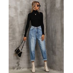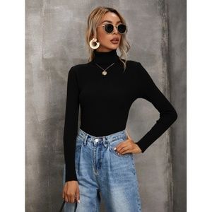 Black Rib Knit Turtle Neck Sweater Top
