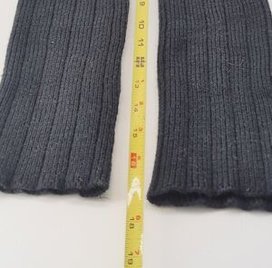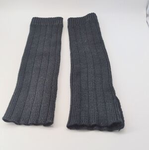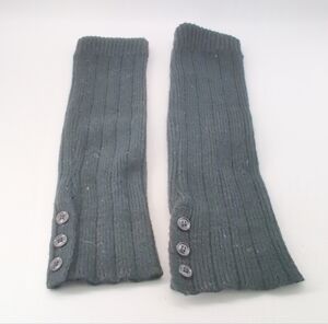 Stylish black ribbed arm warmers featuring button accents. Perfect for adding warmth and style to any outfit.