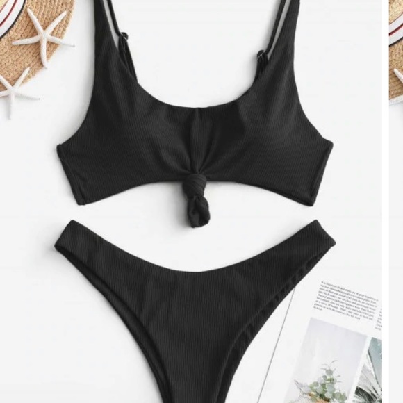 Worn only once, black “Ribbed Knotted Tank Bikini Set” by Zaful Top: Medium Bottom: Medium