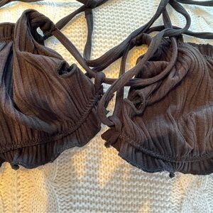 Black Ribbed Bikini Top- Size M