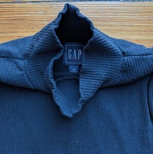 Elevate your style with this sleek black ribbed turtleneck top. Perfect for any occasion, it offers a comfortable and chic fit.