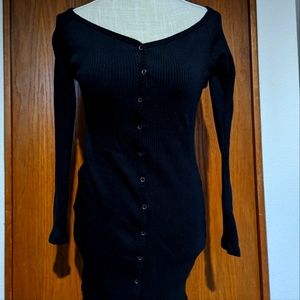 Black Ribbed Button Dress