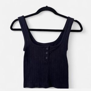 black ribbed tank, button front top, square neck tank, fitted basic, stretchy cami, y2k top, everyday staple