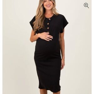 This black dress features a stylish button-down design, perfect for any occasion. Its classic color and chic style make it a versatile addition to your wardrobe.