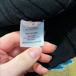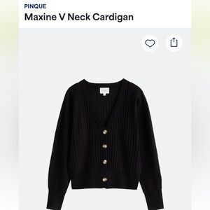 Black ribbed cardigan with four statement buttons for a polished look. Soft, structured knit provides comfortable layering for day or night. Classic silhouette pairs effortlessly with skirts or trousers. Easy-to-style essential in black for versatile wardrobe rotation.