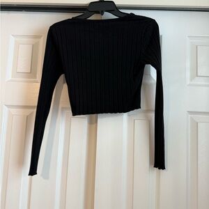 Elevate your style with this chic black ribbed button-up cardigan. Perfect for layering, this versatile piece adds a touch of elegance to any outfit.