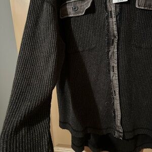 Black Ribbed Button-Up Cardigan