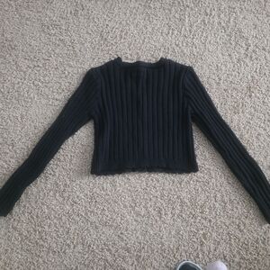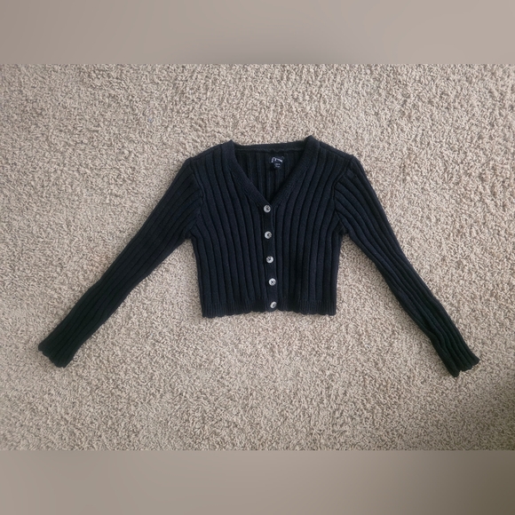 Stay cozy and stylish with this black ribbed button-up sweater. Perfect for layering, this versatile piece is a must-have for any wardrobe.