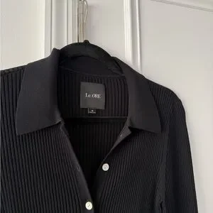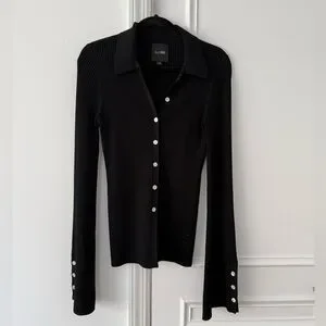 Le Ore black ribbed button up top with pearl buttons and wide sleeves. Can be worn as a top or cardigan!