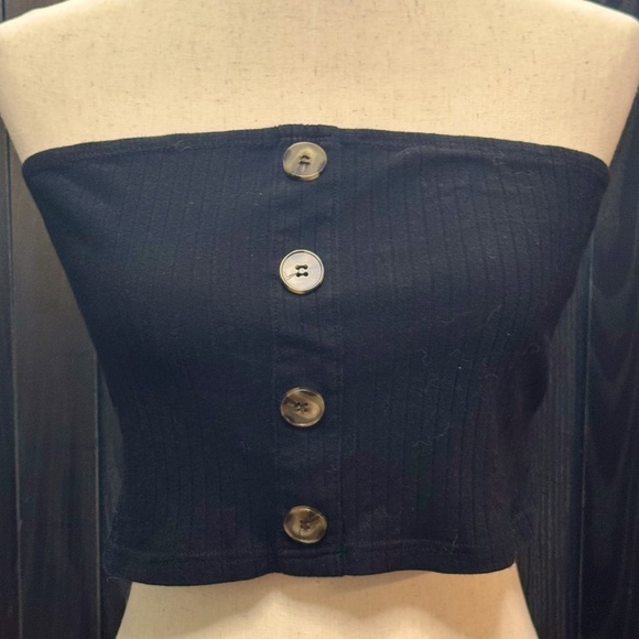 NWOT, never worn. Chic and versatile black tube top featuring stylish button details. Perfect for any occasion.