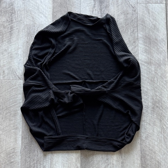 Stylish black ribbed long sleeve cardigan. Perfect for any occasion.