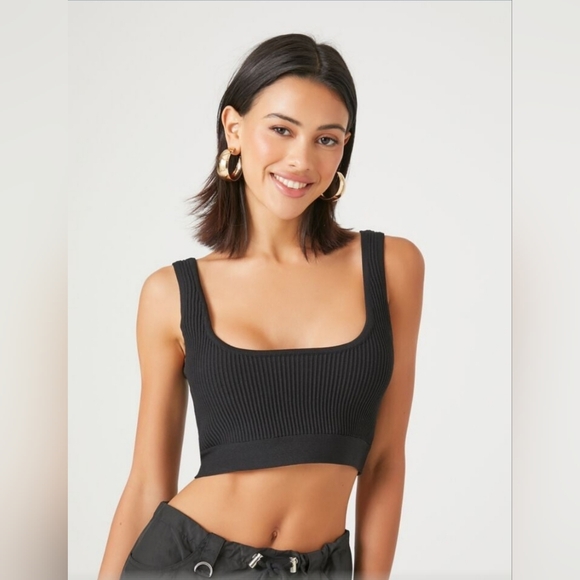 Black sweater knit cropped tank top with ribbed detail. Never worn, NWT!