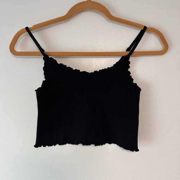 This stylish black ribbed crop top is perfect for any casual outing. Its sleek design offers comfort and versatility.