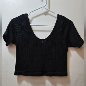 Black ribbed crop top. Size large, but fits a medium fitted. Very stretchy and soft