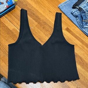 Black Ribbed Crop Top