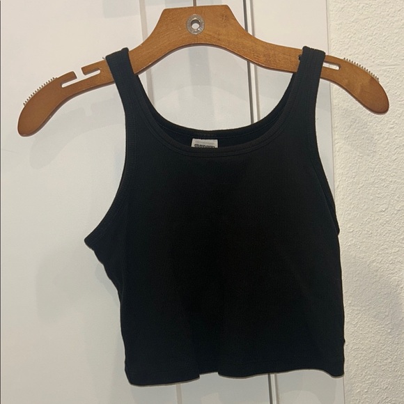 This black ribbed tank top is a versatile addition to your wardrobe. Perfect for layering or wearing on its own, it offers comfort and style.