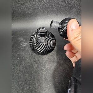 Elegant black ribbed decorative object. Perfect for modern decor.