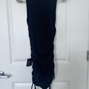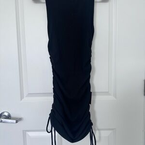 ✨New with tags✨ Lulu’s stretchy ribbed knit casual yet sexy dress with rounded neckline, sleeveless bodice, and bodycon silhouette. Twin drawstrings at each side lend to a trendy ruching effect.