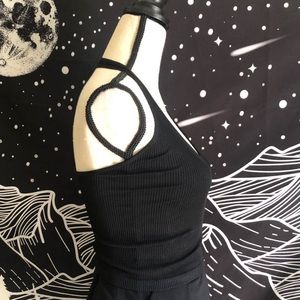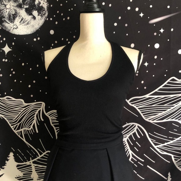 Black Ribbed Halter Top Size S CAN fit a M but snug NWOT Never worn
