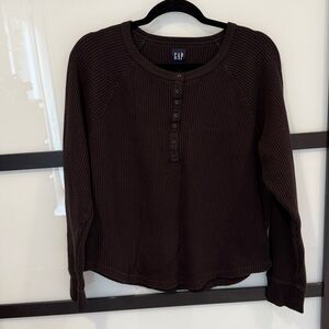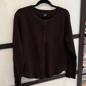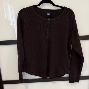 Elevate your casual wardrobe with this black ribbed Henley top. Perfect for any occasion, it offers both comfort and style. GUC