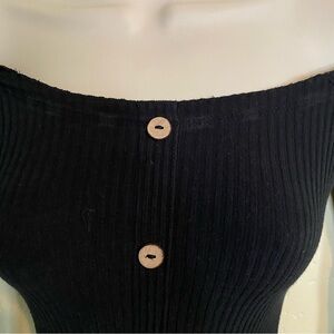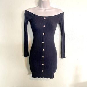 Black Ribbed Knit Off Shoulders Bodycon Mini Dress with Long Sleeves S