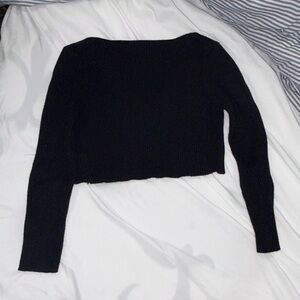 Elevate your style with this chic black ribbed knit top. Perfect for any occasion.