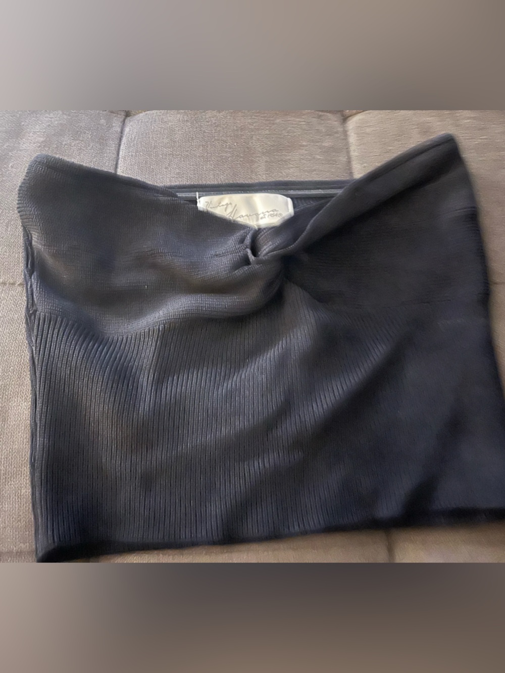 Soft ribbed knit top in solid black. Simple crew style with clean lines. Versatile wardrobe staple. Lightweight and cozy fabric.