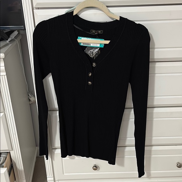 Long sleeve black ribbed top. Button down. Tags still on, extra replacement button