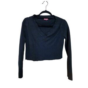 • Black Ribbed Long Sleeve V-Neck Cropped Sweater By Merona Size L