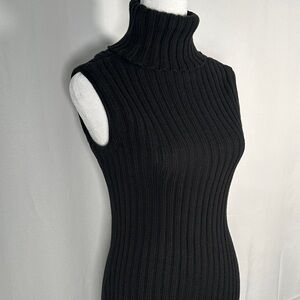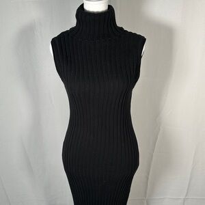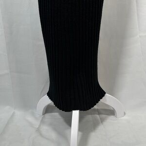 This elegant black ribbed knit dress offers a sleek and sophisticated look. Perfect for any occasion, it combines comfort with style. In excellent condition perfect for fall and winter