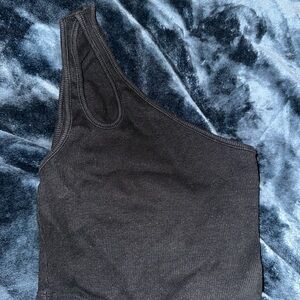 Black Ribbed One-Shoulder Top
