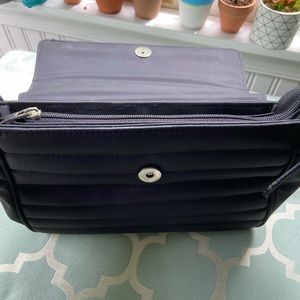 Black Ribbed Purse. Magnetic Latch with zipper compartment.