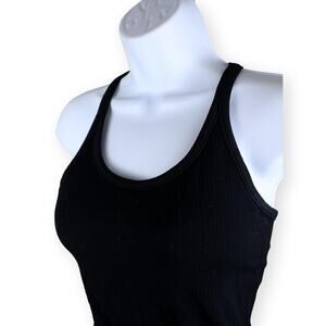 Black Ribbed Racerback Athletic Top S. Scoop neck, stretch, built in padded bra. Excellent condition.