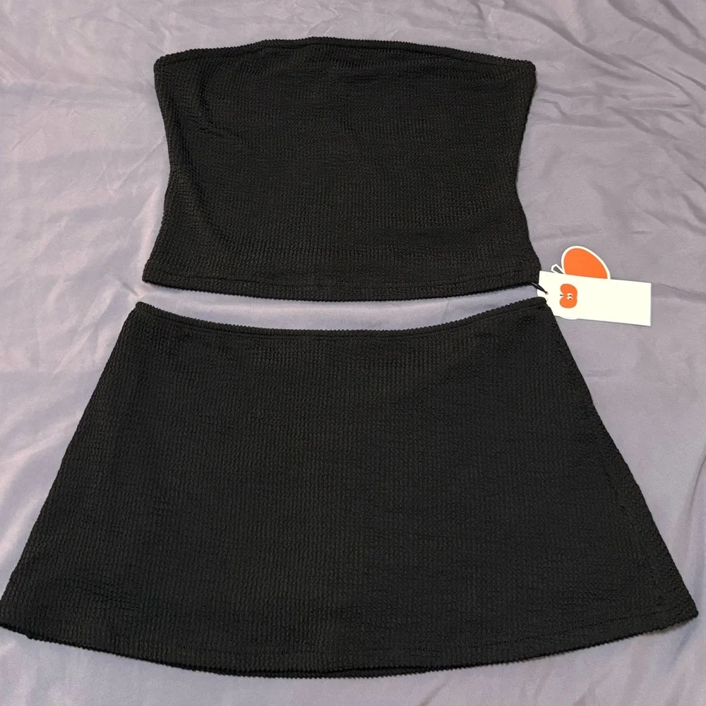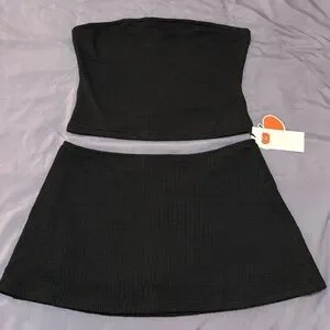NWT cutest black ribbed tube top & mini skirt matching set. Never worn. From Cider both pieces are size Large. Skirt has shorts built in, both are stretchy.