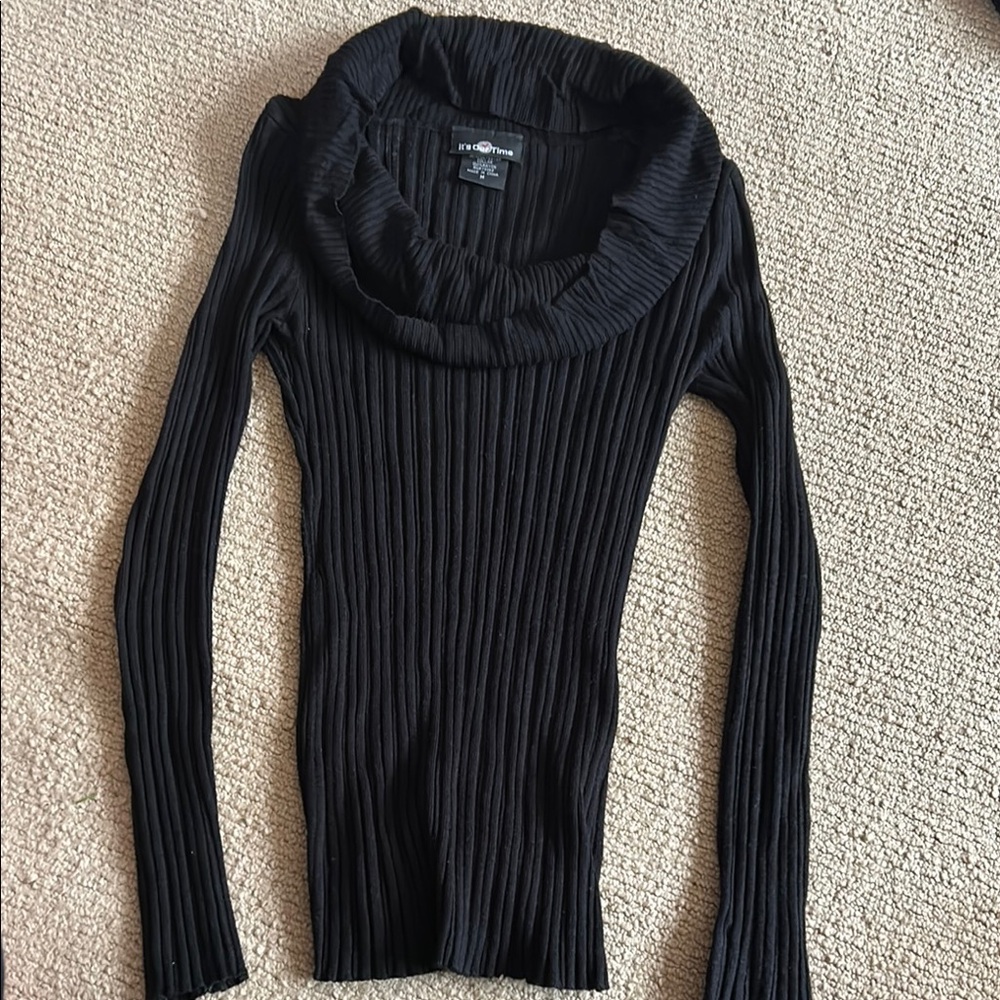 Stay stylish and warm with this black ribbed sweater. Perfect for any occasion. Cowlneck