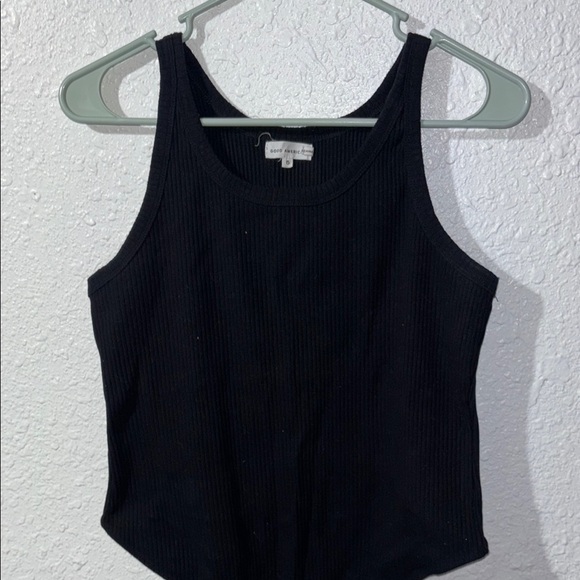 This sleek black ribbed tank top is perfect for any occasion. Its versatile design makes it a must-have in your wardrobe.