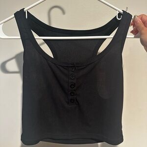 Elevate your wardrobe with this sleek black ribbed tank top. Perfect for layering or wearing on its own, this versatile piece is a must-have for any fashion-forward individual.