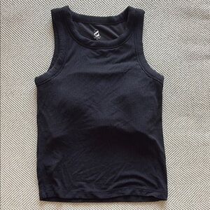 Stylish black ribbed tank top. Perfect for casual wear. Built in bra.