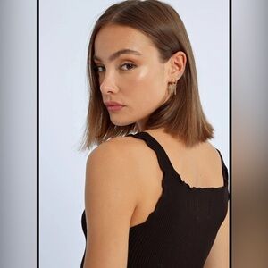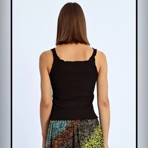 Elevate your style with this chic black ribbed tank top. Perfect for any occasion, this top offers both comfort and elegance.