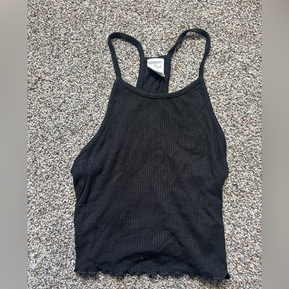 This stylish black ribbed tank top is perfect for any casual outing. Its sleek design offers comfort and versatility.