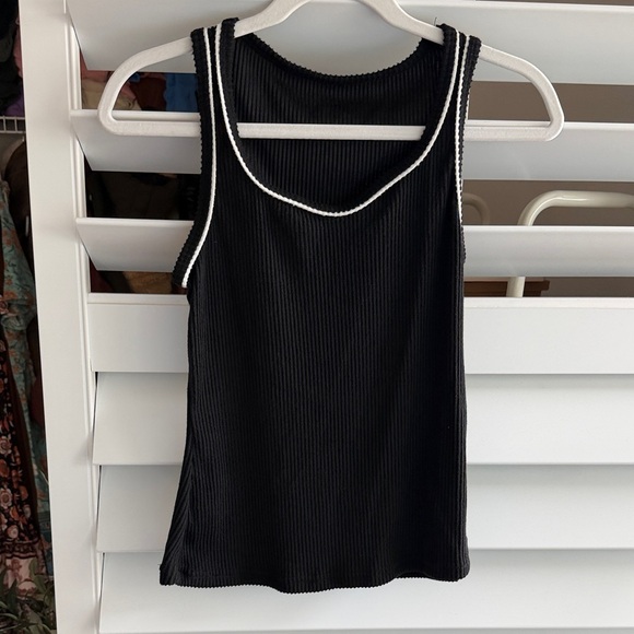 This stylish black ribbed tank top is perfect for any casual outing. Its sleek design offers comfort and versatility. Brand new without tags