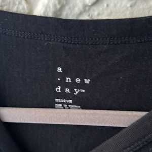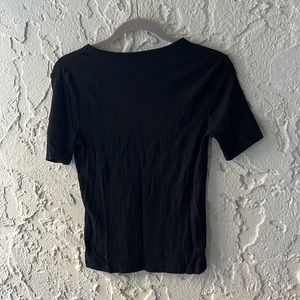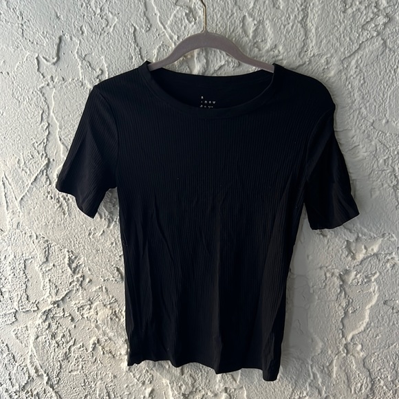 Black ribbed tee. Form fitting. Size medium. Faux ribbed pattern.