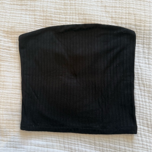 Stylish black ribbed tube top. Perfect for layering or wearing alone.