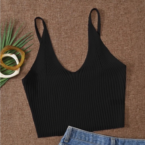 Sleek and stylish black ribbed top perfect for any occasion. Pair it with your favorite jeans for a chic look.