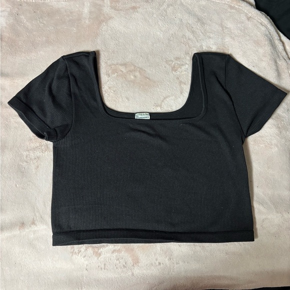 Elevate your wardrobe with this sleek black ribbed top. Perfect for any occasion, this versatile piece offers both comfort and style.