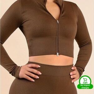 Elevate your style with this Yoga Set. Featuring a chic zip-up design, perfect for yoga or working out. Brand new set gives full support.