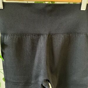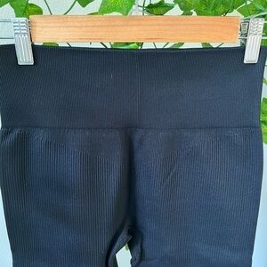 Comfortable and stylish high rise black ribbed leggings. Perfect for everyday wear.