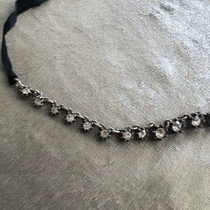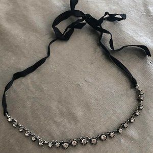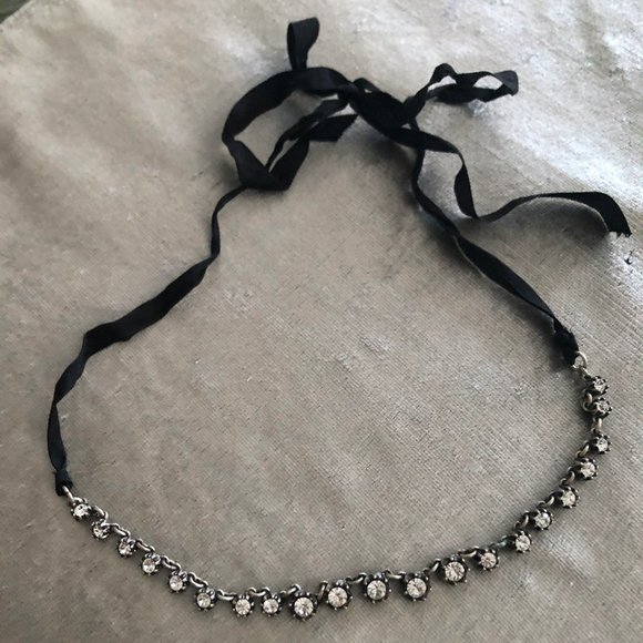 Darling necklace. Black ribbon (adjustable) & rhinestones. Very elegant. No stones missing. I don't think I ever worse this.