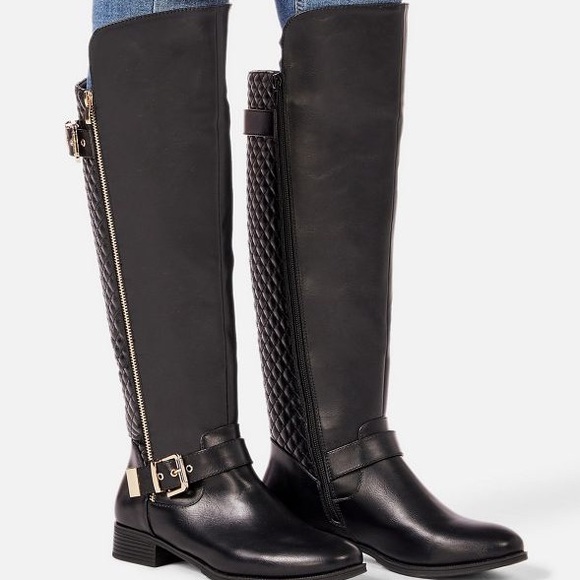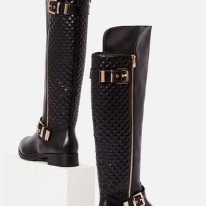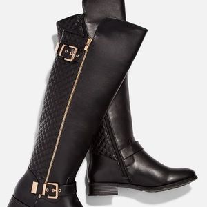 Cute Black Rider Boots sz 8 true to size with box faux leather